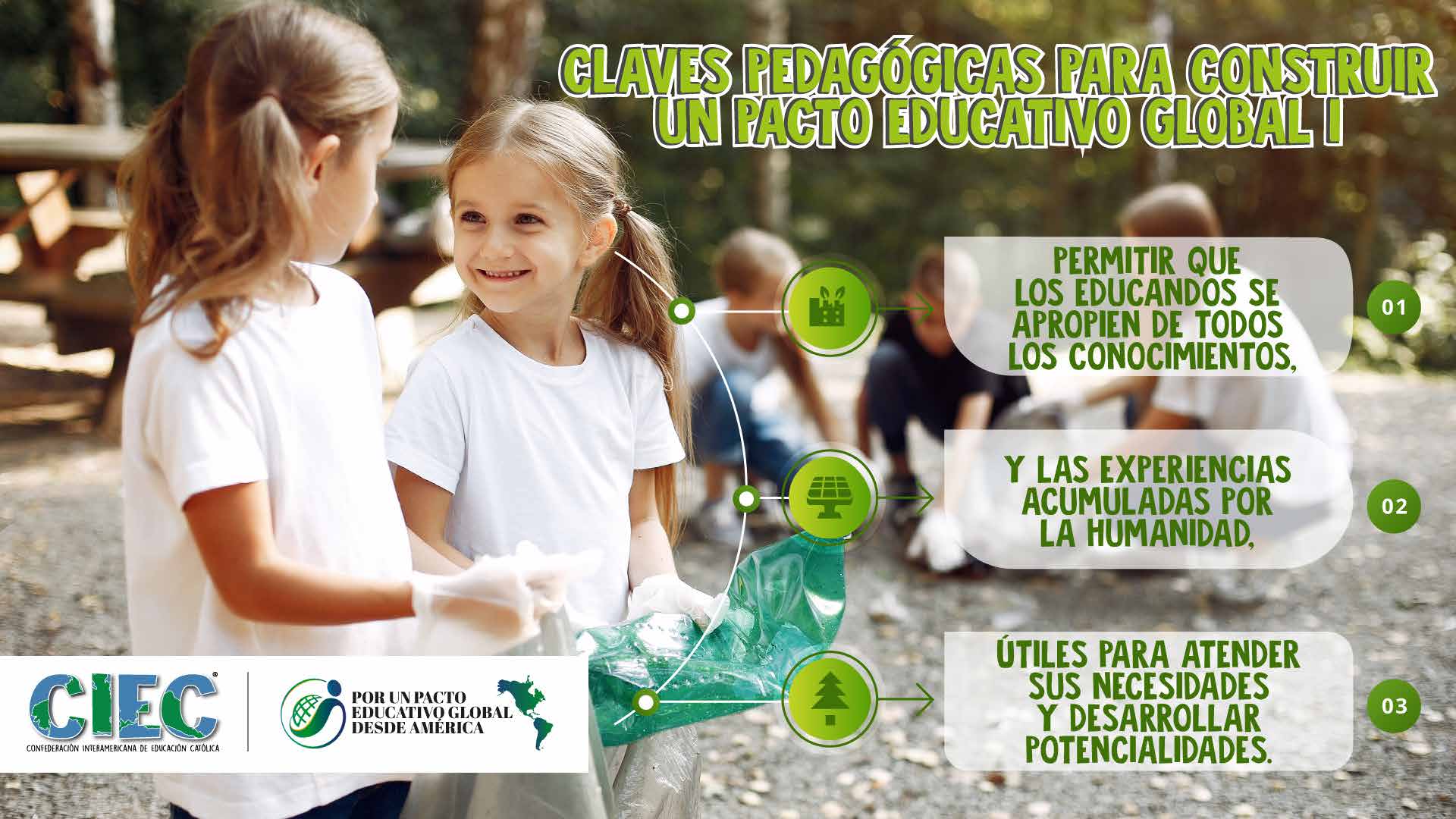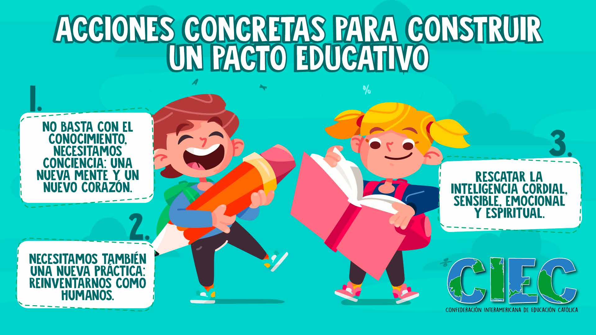 La Confederación Interamericana de Educación Católica - CIEC ha elaborado una serie de infografías que impulsan y difunden el Pacto Educativo Global - PEG. De esta manera gráfica y concisa se dan a conocer los puntos más resaltantes del PEG y cómo reconstruirlo en la sociedad.