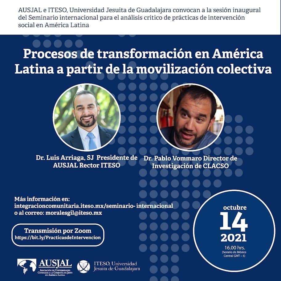 Es por ello que la Asociación de Universidades confiadas a la Compañía de Jesús en América Latina (AUSJAL) e ITESO, la universidad jesuita de Guadalajara, organizan el Seminario Internacional para el análisis crítico de prácticas de intervención social en América Latina.