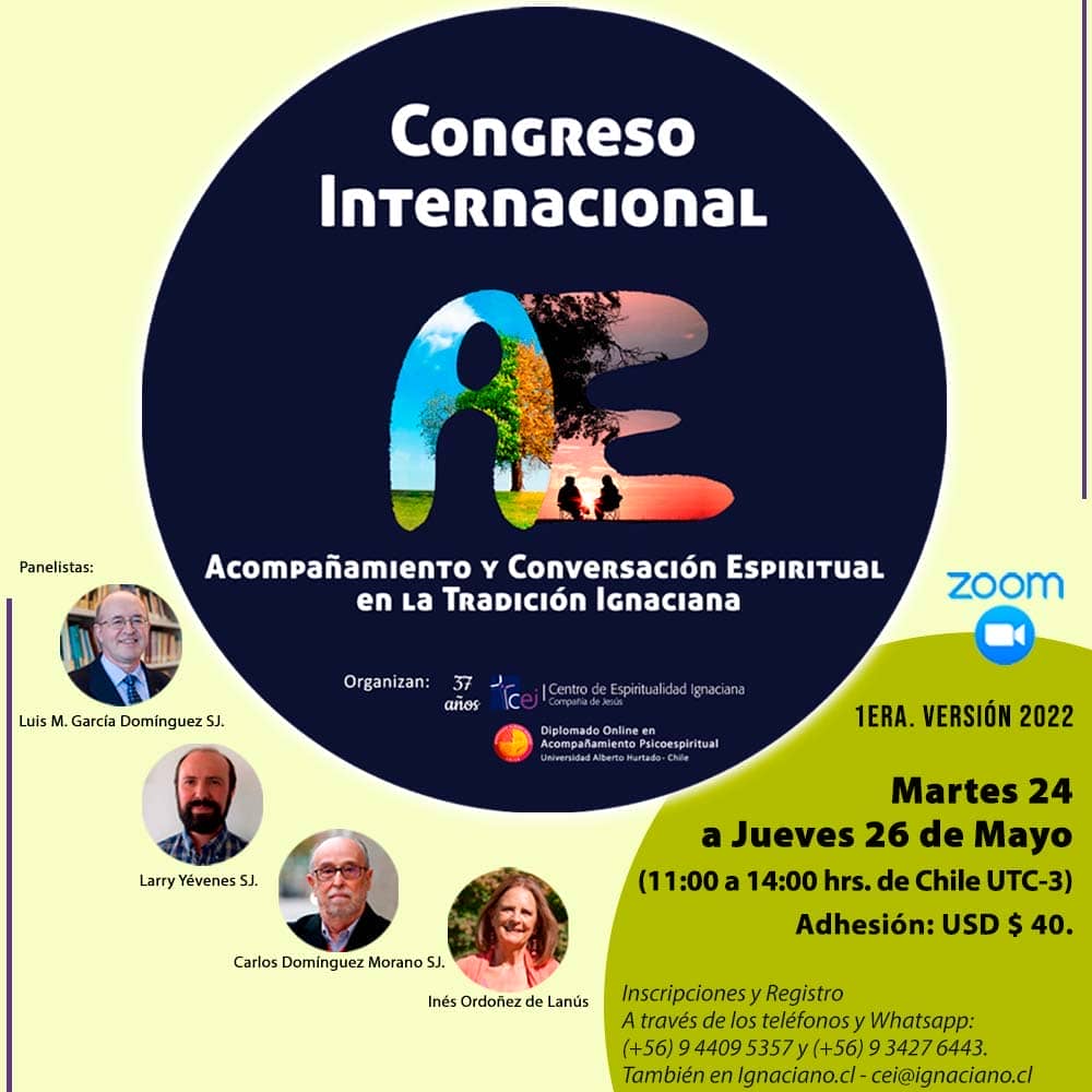 El Centro de Espiritualidad Ignaciana de Santiago de Chile y el Diplomado en Acompañamiento psicoespiritual de la Universidad Alberto Hurtado, ambas obras de la Compañía de Jesús en Chile, organizan el Congreso Internacional de "Acompañamiento y Conversación Espiritual en la Tradición Ignaciana" como parte de las actividades por el Año Ignaciano.