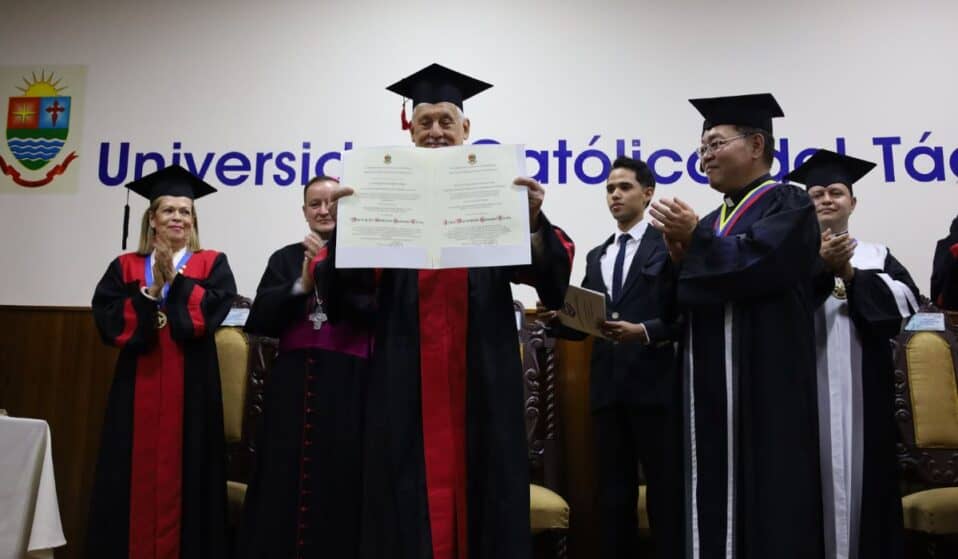 🔸Más adelante, en un acto académico celebrado en el auditorio de la Universidad Católica del Táchira, esta casa de estudios otorgó la distinción honorífica “Doctor Honoris Causa” al Prepósito General de la Compañía de Jesús, en el marco del sexagésimo aniversario de esta institución educativa y en homenaje a los cien años de presencia educativa de la Compañía de Jesús en Venezuela.