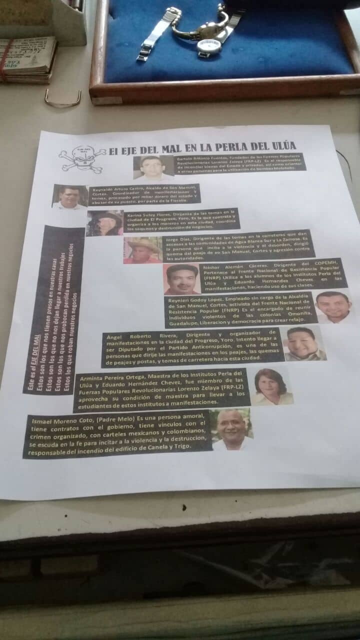 En Honduras está circulando en las redes sociales un cartel anónimo en que se acusa falsamente al Padre Ismael Moreno Coto (Padre Melo) y a otros ocho líderes regionales llamándolos de Eje del Mal en la Perla del Ulúa.