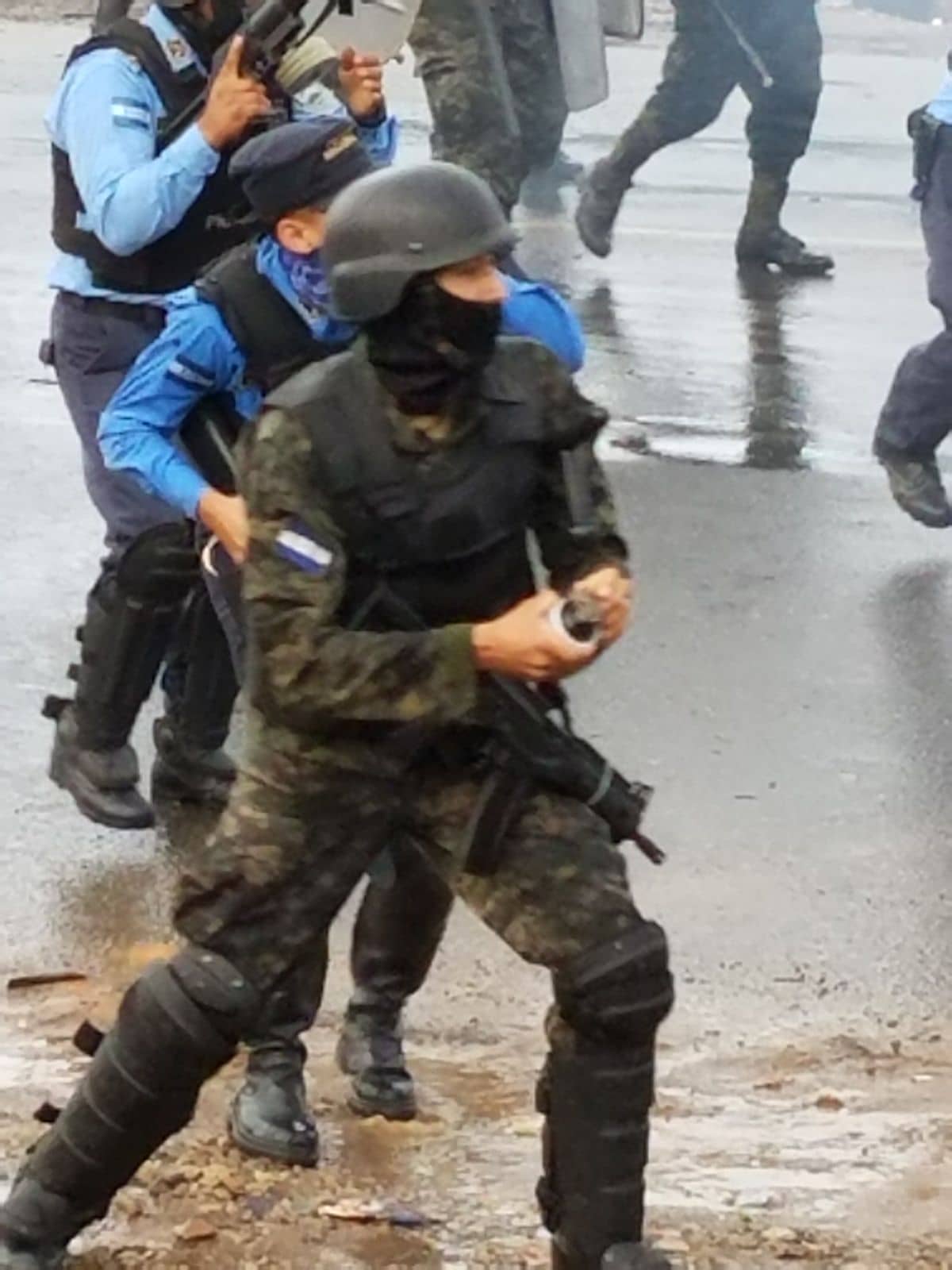 Lamentablemente lo que nos tocó observar durante nuestra estancia en Honduras fue una desproporcionada militarización del país que con gases lacrimógenos y balas impidió que los innumerables intentos de movilización popular manifestarán nuevamente su repudio a JHO; el asesinato o captura de manifestantes, sobre todo de dirigentes de movimientos sociales; algunos enfrentamientos en condiciones muy desiguales, entre manifestantes y miembros del ejército, la policía y la policía militar; un efectivo cerco mediático al interior y exterior del país que impidió que los medios de comunicación, con excepción de Radio Progreso y un canal de TV, dieran a conocer la gravedad de lo que estaba sucediendo, y más bien se dedicaran a amedrentar a la población para desmovilizarla.