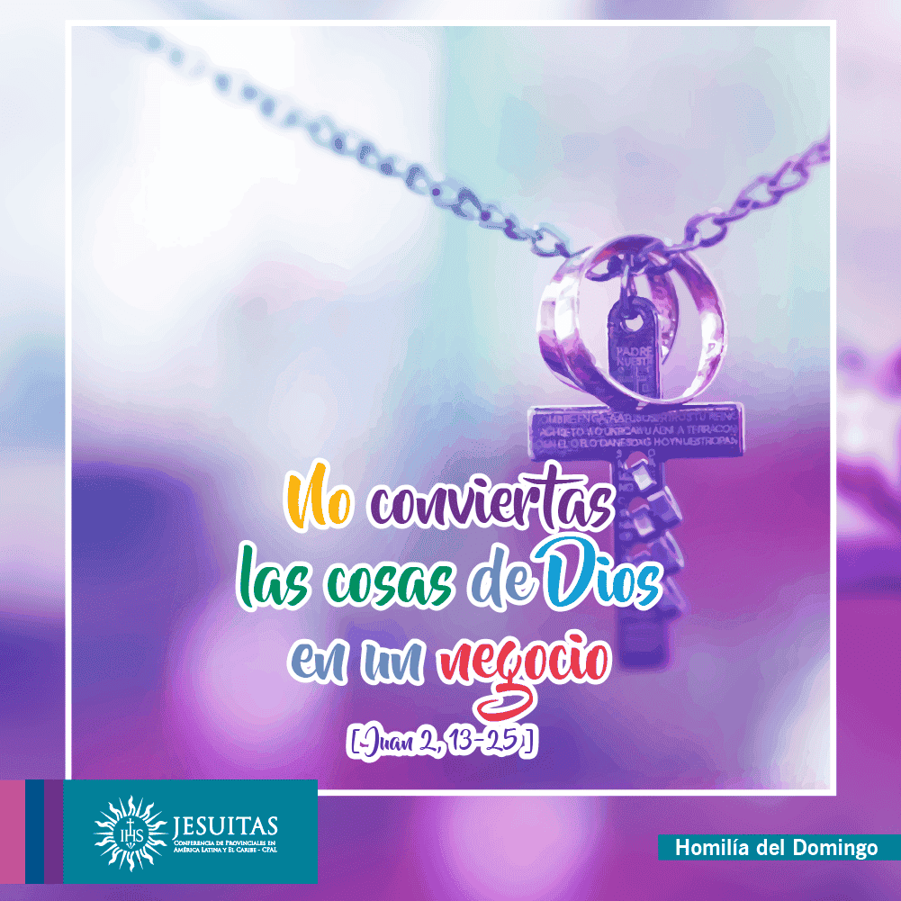 Que en época de Jesús el templo se haya convertido en lugar de negocios, nos invita a estar atentos, porque también hoy, nuestros templos o lugares de culto, o las cosas de Dios, la misma comunidad eclesial y la religiosa, pueden convertirse en lugares de negocios, mejor dicho, en el negocio, donde puede que haya dueños, cambistas y los del montón. Con ello estaríamos asfixiando la relación con el Dios que es Padre de todos. Se mataría la relación de hermanos y hermanas en la fe.