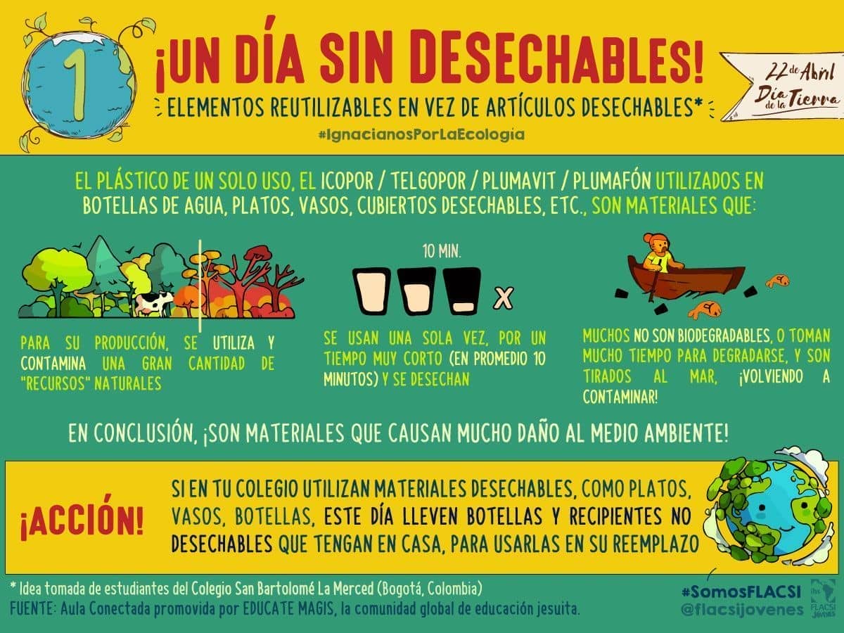 - ¡Haz un registro gráfico de la acción! Y compártela en los medios oficiales de tu colegio (página web y redes sociales). Recuerda etiquetar a @flacsijovenes (Instagram y Facebook), y usar los hashtags: #IgnacianosPorLaEcología y #SomosFLACSI.