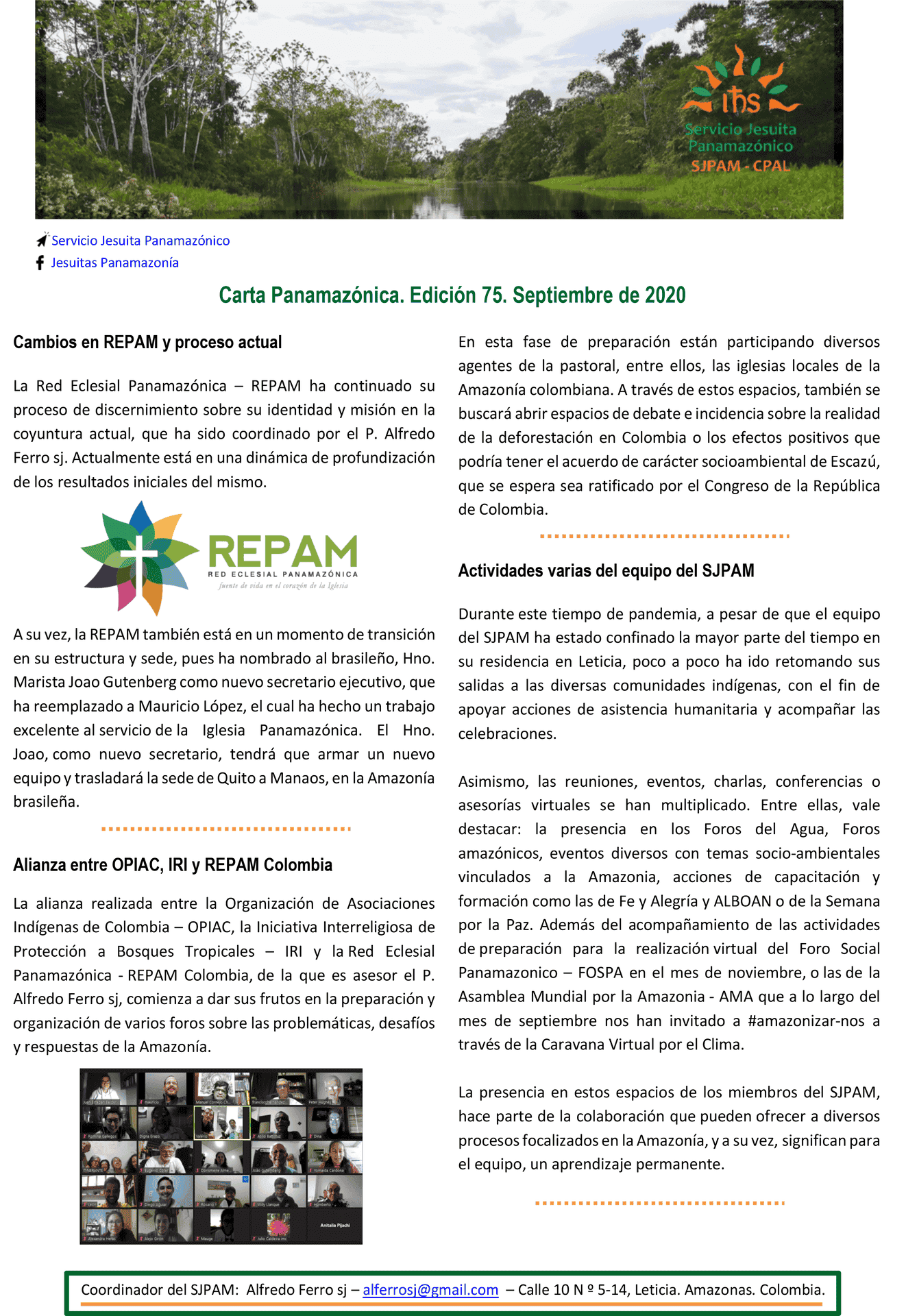 A continuación, presentamos la edición 75 septiembre de 2020 de la Carta Panamazónica publicada por el Servicio Jesuita Panamazónico.