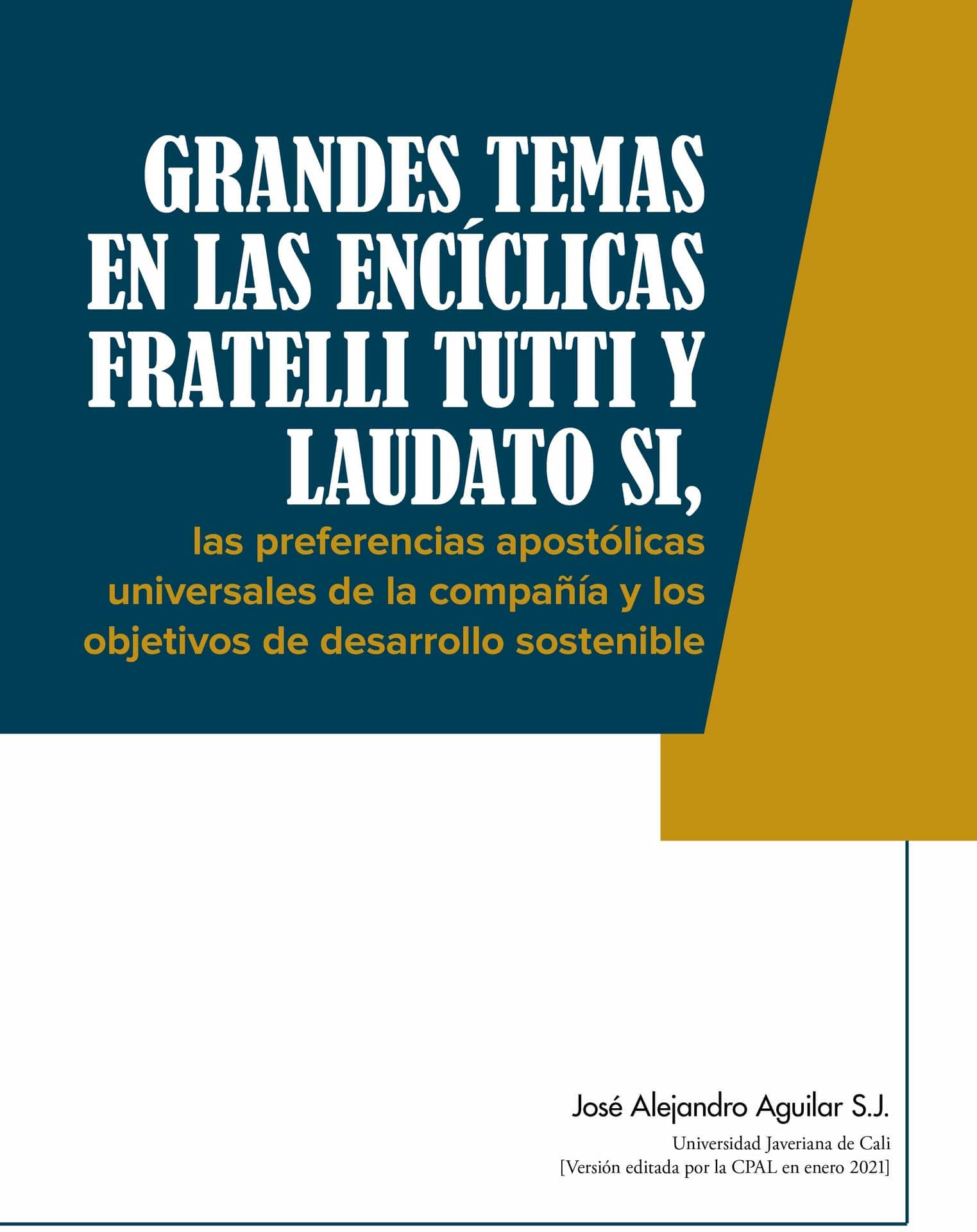 GRANDES TEMAS EN LAS ENCÍCLICAS FRATELLI TUTTI Y LAUDATO SI, las preferencias apostólicas universales de la compañía y los objetivos de desarrollo sostenible son las bases de la planificación estratégica de la Universidad Javeriana de Cali. Presentamos el siguiente documento producido por el p. José Alejandro Aguilar, SJ (COL).