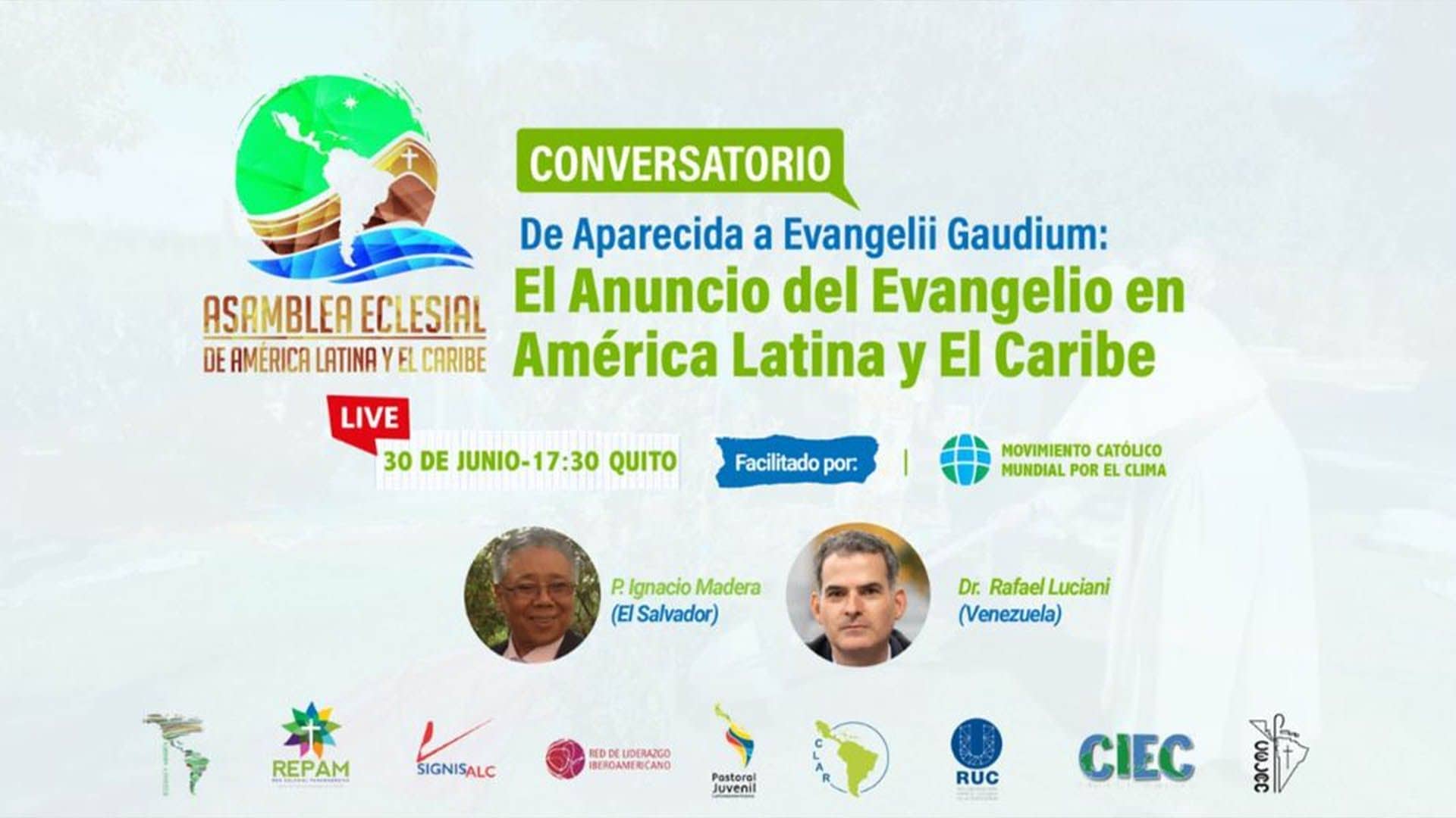 El conversatorio se realizará el miércoles 30 de junio, y contará con la presencia de Rafael Luciani (Doctor en Teología) y el P. Ignacio Madera (teólogo colombiano y expresidente de la CLAR), quienes acompañaron de cerca la construcción del documento de Aparecida.