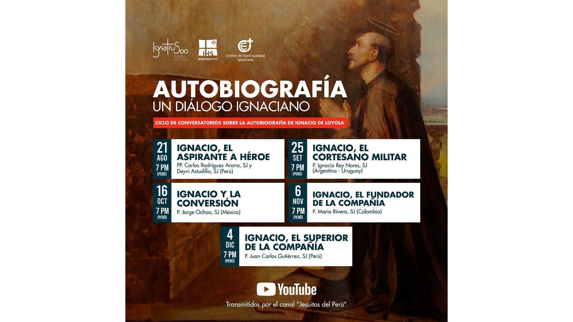 "Autobiografía. Un diálogo Ignaciano" es el ciclo de conferencias que se realizará cada mes y que será un espacio virtual de conversación y reflexión, organizado por la Provincia Jesuita del Perú a través de su Centro de Espiritualidad Ignaciana (CEI).