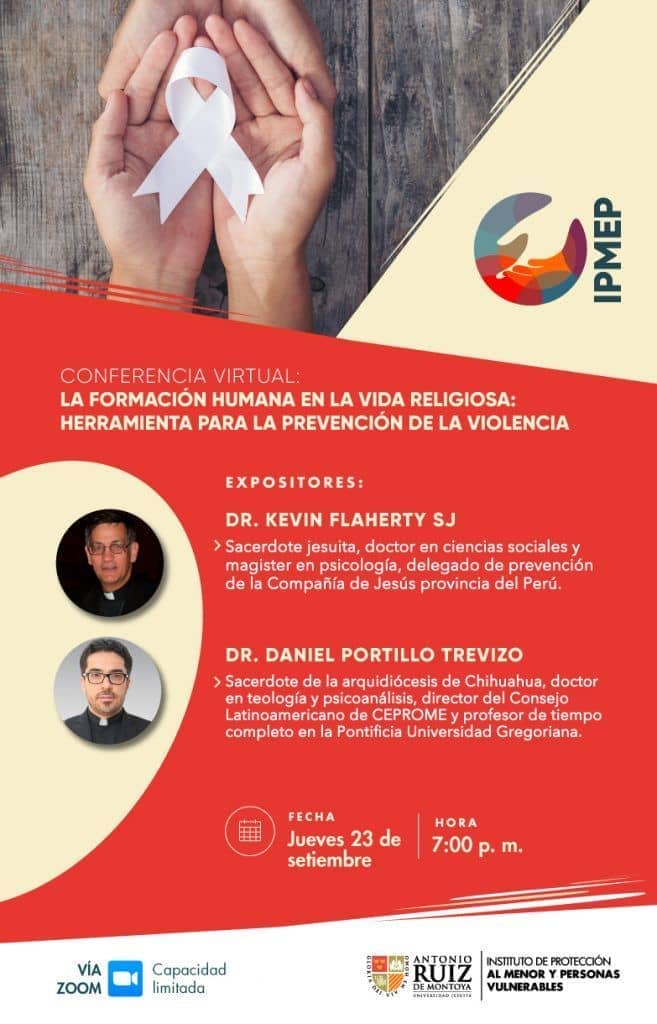El Instituto de Protección al Menor y Personas Vulnerables (IPMEP), de la Universidad jesuita Antonio Ruiz de Montoya, organiza la conferencia virtual “Formación humana en la vida religiosa: herramienta para la prevención de la violencia”.