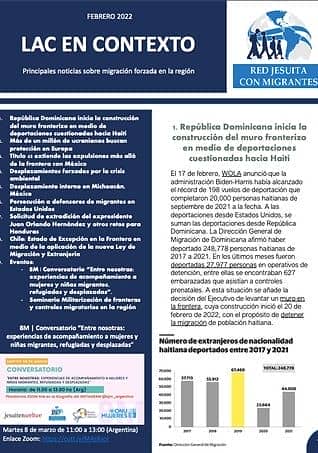 "LAC en contexto" es el boletín mensual de la Red Jesuita con Migrantes en América Latina y el Caribe (RJM - LAC), en esta ocasión comparte las noticias correspondientes al mes de febrero.