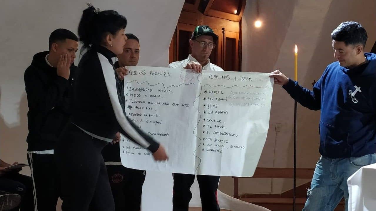Uno de nuestros principales aportes desde la espiritualidad ignaciana es el de animar sus vidas desde una fe, muchas veces inicial. Colaborar con su encuentro personal con Jesús, testimoniando la misericordia del Padre y el abrazo fraterno de la comunidad parroquial. Queremos prepararlos con cimientos sólidos en su reinserción social y creemos que trabajar elaborando un “proyecto de vida” y potenciando sus cualidades personales en clima de compañeros de Cristo es el sello distintivo ignaciano que procuraremos seguir ofreciendo a lo largo de sus pasos en la recuperación.