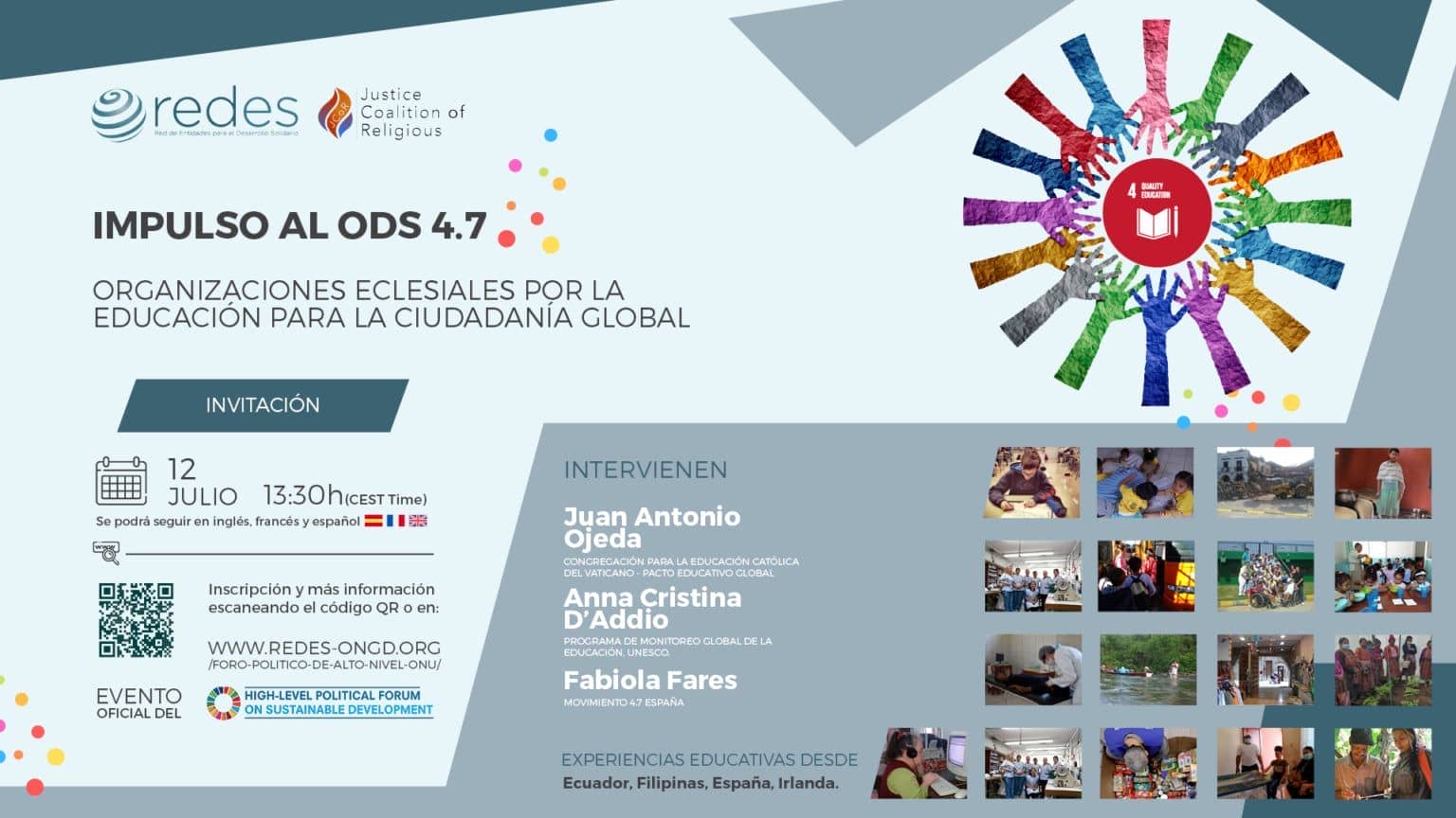La Red Generación 21+ vinculada a la Federación Internacional de Fe y Alegría participó en el webinar "Impulso al ODS 4.7 Organizaciones eclesiales por la Educación para la Ciudadanía Global" Organizado por segundo año consecutivo por la Red de Entidades para el Desarrollo Solidario-REDES en el marco del Foro Político de Alto Nivel sobre Desarrollo Sostenible (HPLF - High-level Political Forum on Sustainable Development), plataforma central de las Naciones Unidas para el seguimiento y la revisión de la Agenda 2030 para el Desarrollo Sostenible y los Objetivos de Desarrollo Sostenible (ODS).