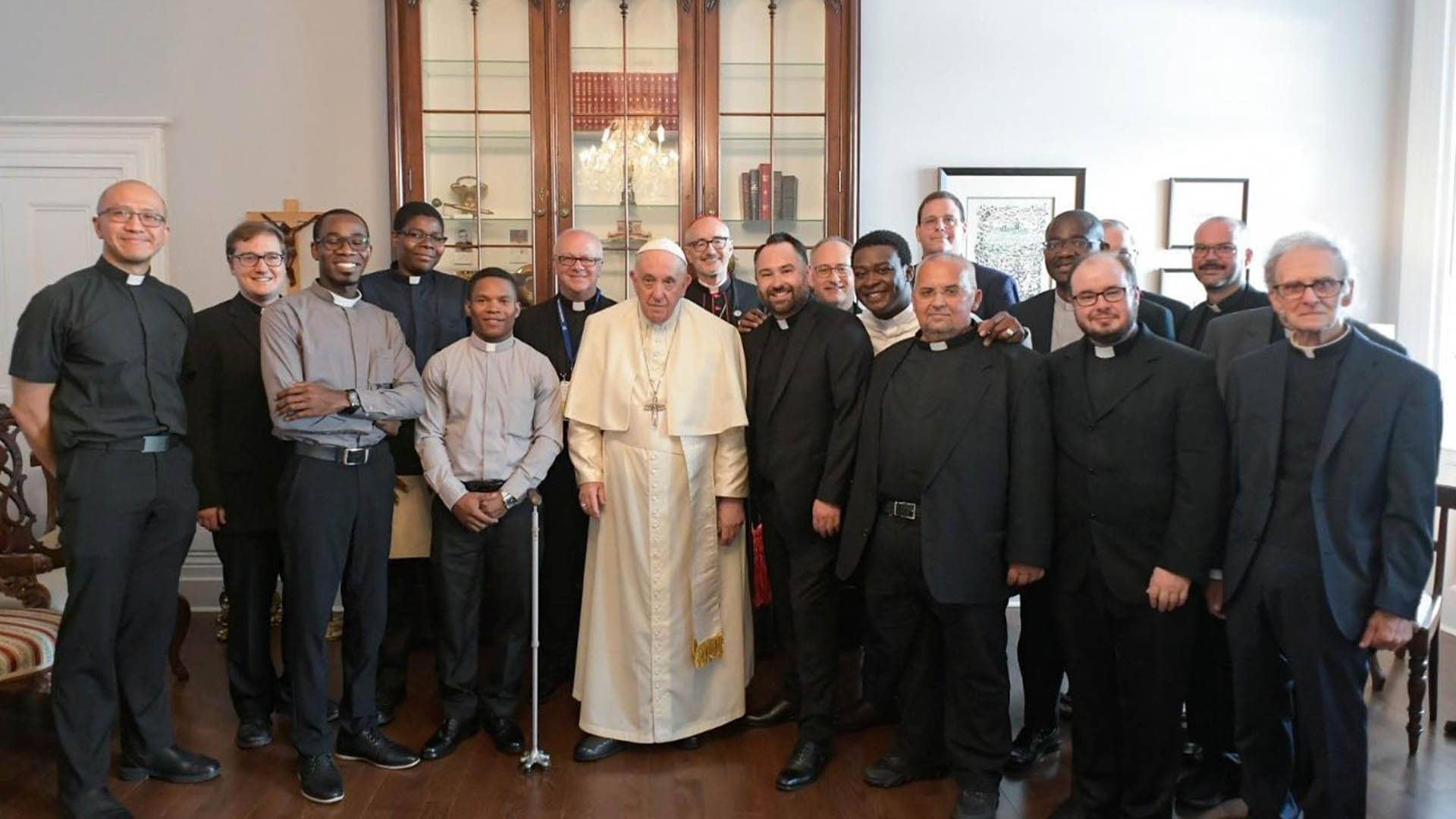 29 de julio. Último día del viaje apostólico del Papa Francisco a Canadá. Se termina la etapa en Quebec e inicia la de Iqaluit, en el norte, donde se ha programado un encuentro con los Inuit. La conversación con los jesuitas está prevista para las 9 de la mañana, pero el Papa ingresa en la sala del edificio del Arzobispado un cuarto de hora antes. Lo esperan 15 jesuitas de la Provincia canadiense, que incluye el territorio de ese país y Haití. Está en curso la Congregación provincial, planeada desde hace tiempo, lo que explica la ausencia del Padre provincial. Tras los primeros saludos espontáneos luego del ingreso del Papa, el padre Marc Rizzetto, de la comunidad de Quebec, dirige a Francisco una cordial bienvenida de parte de los presentes y de los más de 200 jesuitas de la Provincia. Menciona especialmente a los 45 miembros de la Congregación provincial, reunidos en Midland, y a los hermanos ancianos de las enfermerías provinciales de Richelieu y Pickering.