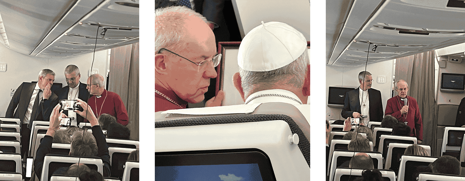 Rueda de prensa a tres. Francisco, Justin Welby e Ian Greenshields, los 'tres mosqueteros de la paz' que viajaron junto a Sudán del Sur, regresaron en el mismo avión hasta Roma. Católicos, anglicanos y presbiterianos quisieron, también, ofrecer sus impresiones en conjunto, en un gesto inédito hasta la fecha.
