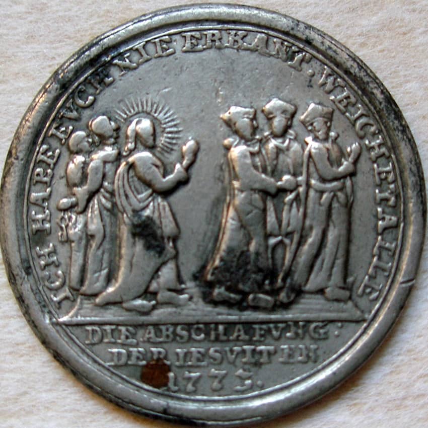 Medalla conmemorativa. En el reverso: Jesús y San Pedro expulsan a los jesuitas de la Iglesia.
