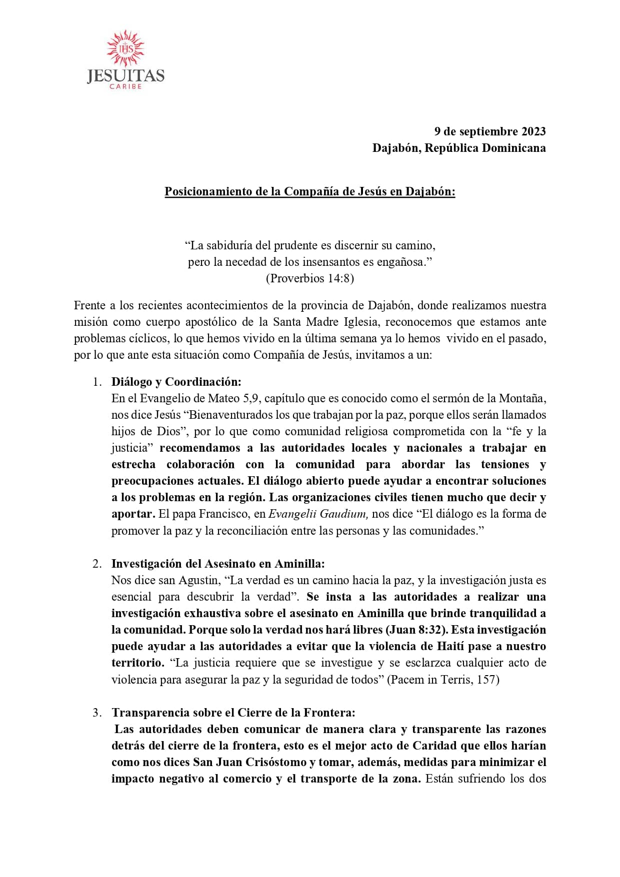 Posicionamiento de la Compañía de Jesús en Dajabón