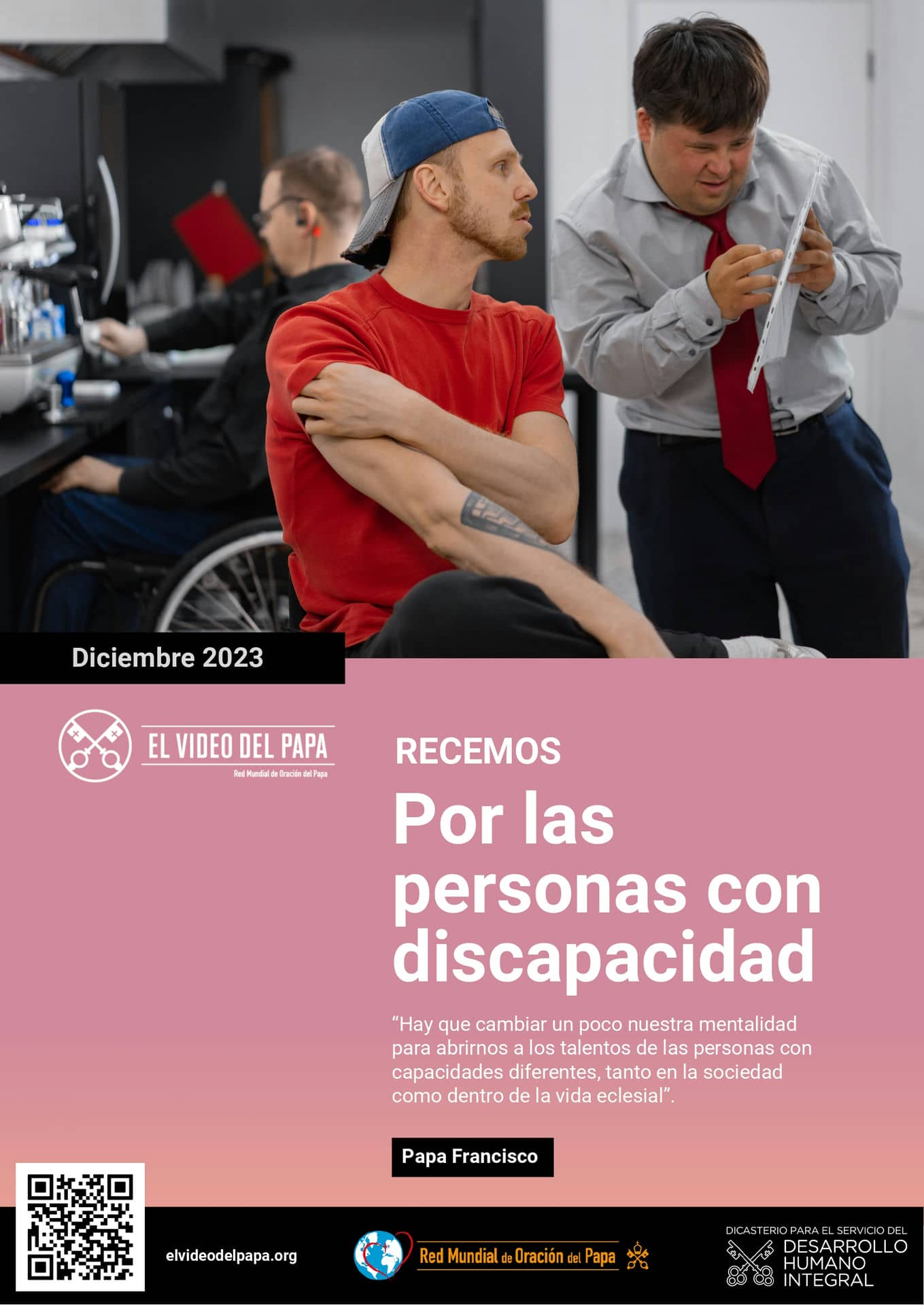 Esta intención de oración coincide con el mes en el que la ONU estableció el Día Internacional de las Personas con Discapacidad (3 de diciembre) con el objetivo de promover sus derechos y bienestar. El Papa Francisco insiste en el concepto de «capacidades diferentes» para subrayar la gran contribución que puede aportar a la sociedad, la plena inclusión y valorización de los más frágiles.