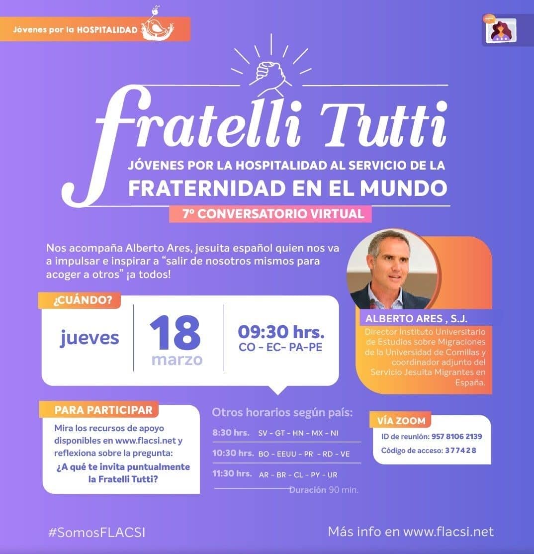 El jesuita español Alberto Ares nos comparte su texto “Fratelli Tutti y Migraciones” como guía y respuesta a esta pregunta. Es por esto que nos hemos animado a invitarlo al 7° Conversatorio Virtual de Jóvenes por la Hospitalidad, para que nos impulse e inspire a “salir de nosotros mismos para acoger a otros” ¡a todos!