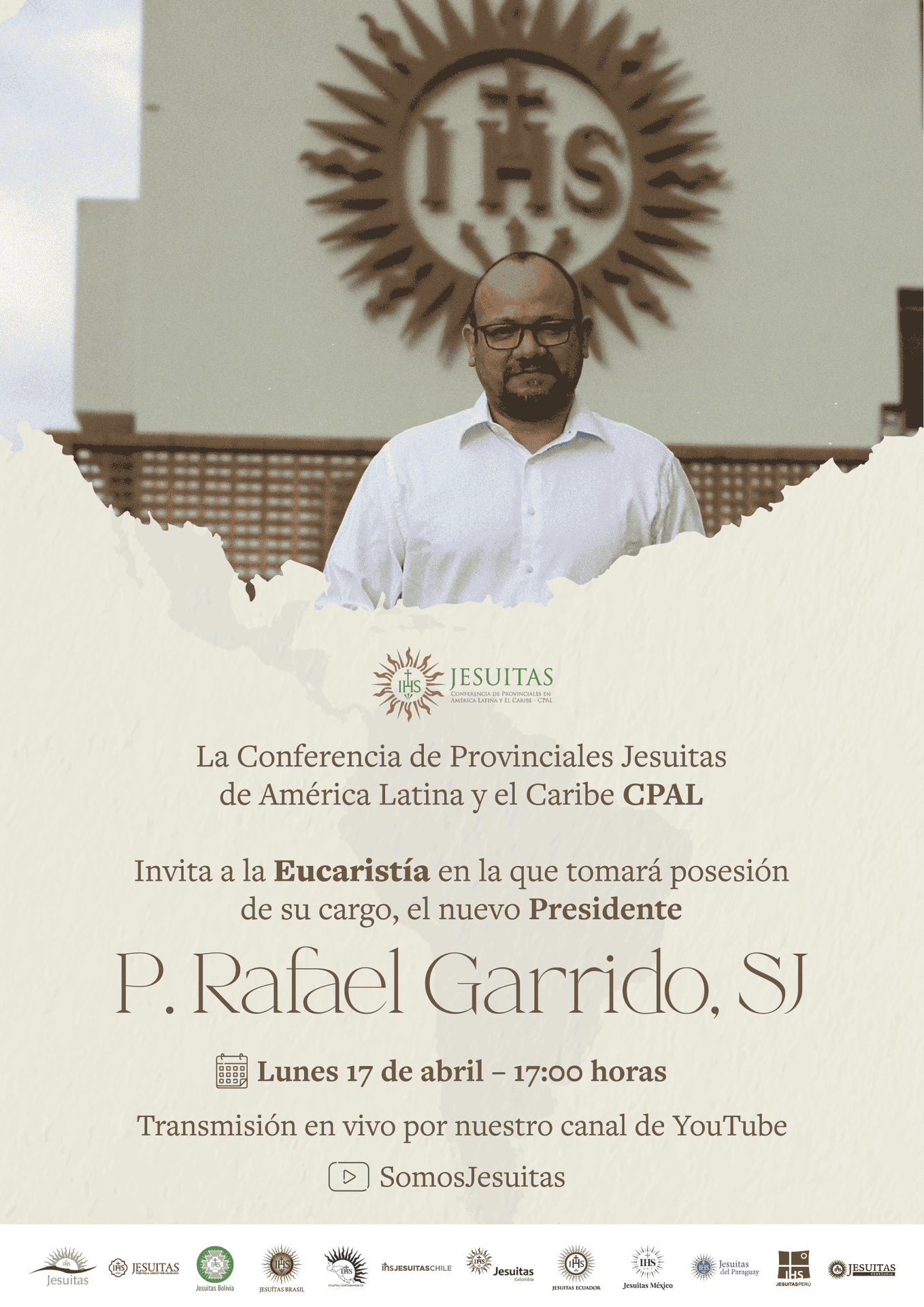El Padre Arturo Sosa SJ, General de la Compañía de Jesús, nombró el 23 de enero de 2023, al P. Rafael David Garrido Vargas, SJ como el nuevo Presidente de la Conferencia de Provinciales Jesuitas de América Latina y el Caribe - CPAL. El P. Garrido sucederá en el cargo al P. Roberto Jaramillo Bernal SJ, que ha venido desempeñando esta responsabilidad desde marzo del 2017.